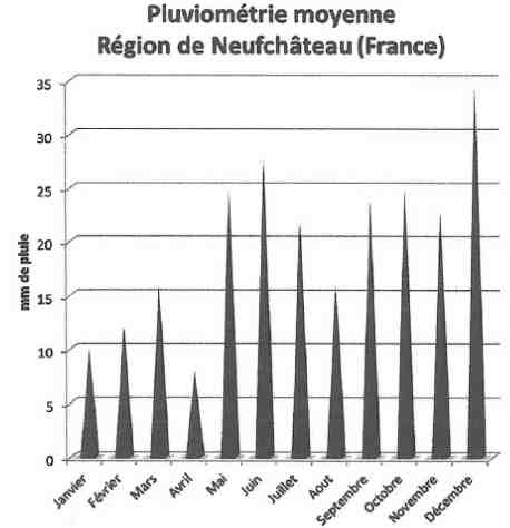 Les nitrates du sol sont facilement lessivés. La commune de Neufchâteau dans les Voges est classée dans les zones vulnérables du fait de la quantité de nitrates dans ses eaux qui comprise entre 40 et 50 mg/L. Du fait de sa pluviométrie importante et assez régulière tout au long de l'année le lessivage est facilité : les précipitations les moins fortes (<15 mm) sont réparties sur 4 mois de janvier à avril alors que tous les autres mois atteignent au moins 20 mm (à l'exception d'août qui atteint 15 mm en moyenne). Les nitrates lessivés sont perdus pour les cultures, ce qui implique la nécessité, afin de maintenir des productions économiquement rentables, d'apporter des engrais azotés, pratique qui, à son tour, augmente le lessivage des nitrates et donc la pollution des nappes. Il ne faut pas oublier que plus de 50% des nitrates apportés par les engrais, même à libération retardée, sont perdus et lessivés ou infiltrés (voir sujet1 annales zéro). Les chiffres de 60 mg/kg de résidus azotés dans le sol sont donnés pour un apport d'engrais de 125 kg/ha (sujet Emirats arabes 2012).