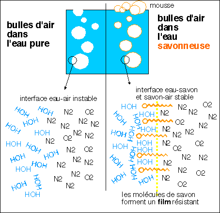 l'eau contient un agent tensioactif, les bulles sont stables