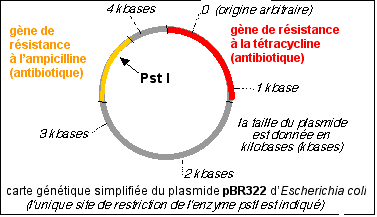 Le taux d'efficacité des différentes étapes de la transgenèse n'est pas de 100%. Ainsi, dans le tube qui permet de recombiner le gène de l'insuline avec l'ADN circulaire du plasmide, tous les plasmides n'intègrent pas le gène. De même, dans le flacon où sont mis en présence les bactéries et les plasmides transformés ou non, certaines bactéries ne font pas entrer le plasmide dans leur cytoplasme ou le détruisent une fois entré. Les bactéries que l'on peut qualifier de recombinées ou transformées ne sont donc que celles qui, en petit nombre, ont intégré le plasmide transformé dans leur cytoplasme sans le détruire. Pour sélectionner les bactéries susceptibles de produire de l'insuline, les bactéries obtenues précédemment sont étalées sur un milieu gélosé (solidifié grâce à de la gélose) contenant toutes les substances nutritives nécessaires à la croissance bactérienne. Au bout de 48 heures, chaque bactérie peut s'être multipliée et avoir donné naissance à une colonie. Une empreinte sur velours est alors réalisée et est appliquée d'une part sur un milieu gélosé contenant de l'ampicilline et de la tétracycline (deux antibiotiques) et d'autre part sur un milieu gélosé ne contenant que la tétracycline. Les bactéries qui ont intégré le plasmide transformé ne se développent pas sur le premier milieu alors qu'elles le font sur le second. Par contre, des bactéries étrangères qui auraient pu infecter les milieux sont normalement tuées sur les deux milieux, du fait de l'emploi des deux antibiotiques. On repère les bactéries transformées par comparaison entre les deux répliques. Les souches transformées ont ensuite été mises en culture et le gène a été exprimé à la suite d'autres manipulations trop longues à relater ici. L'insuline humaine est directement synthétisée par la bactérie. On peut signaler aussi que le gène de l'insuline n'est pas continu mais comprend des parties codantes et non codantes et que, dans la cellule pancréatique, il est d'abord transcrit en un ARNm (messager) qui subit une maturation (est partiellement coupé) avant d'être traduit en une protéine très longue (proinsuline) qui est ensuite coupée pour donner notamment l'insuline. La production d'une souche transgénique d'Escherichia coli produisant de l'insuline humaine injectable a été une longue histoire et est un succès quasiment sans équivalent. |